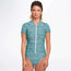 Seas the day with this trendy short sleeve bodysuit featuring short sleeves and a front zip closure. Our UPF 50+ sun protection adds another layer against strong sunlight. The polyester spandex blend fabric is ultra-soft and has just the right amount of stretch.